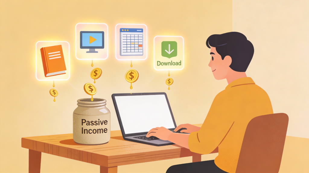 You do not have to invest in the markets to make income. You can make money from things like products. For example you can create products like e-books, stock photos, financial planning templates or online courses. These digital products can make you money over and over. You can get paid every time someone buys one of your products or uses something you made. This is a way to make passive income from digital financial assets, like e-books stock photos, financial planning templates or online courses.